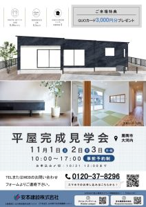 11/8(土)・9(日)【予約制】完成見学会のご案…