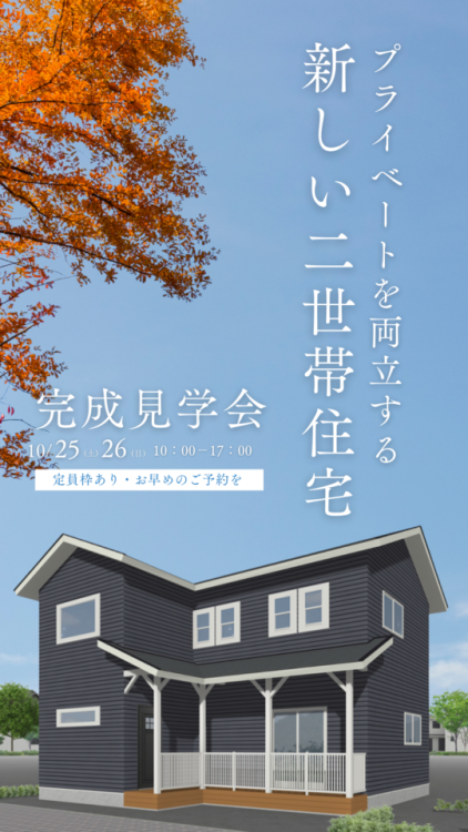 10/25(土)~26(日)「ふたつの家族が心地よく暮らす、新しい二世帯住宅」完成見学会