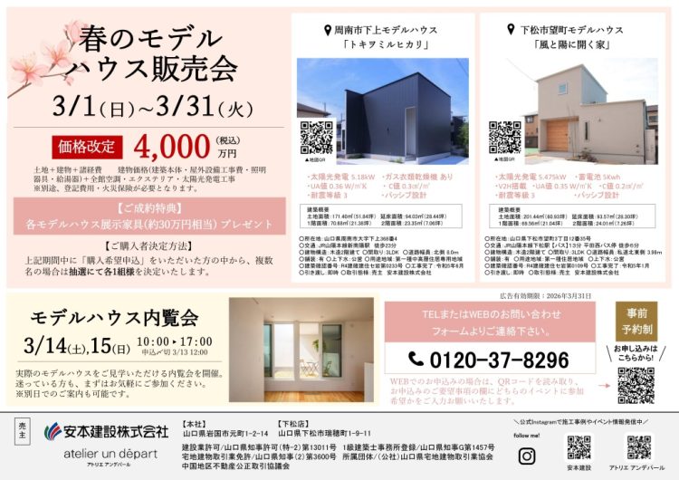 3/1~31春のモデルハウス販売会、3/14,15内覧会 開催!